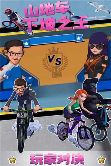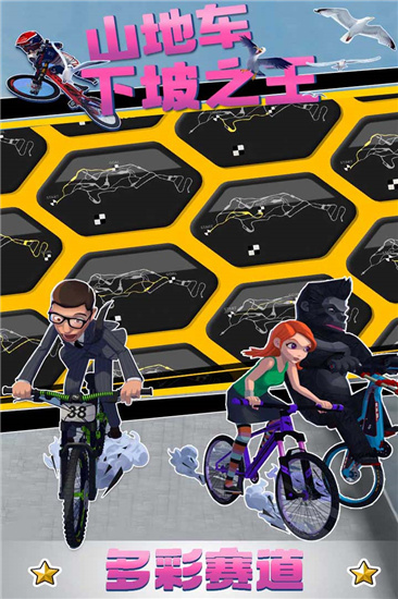 1、山地车下坡之王低模卡通的画风非常爽快的骑行玩法。