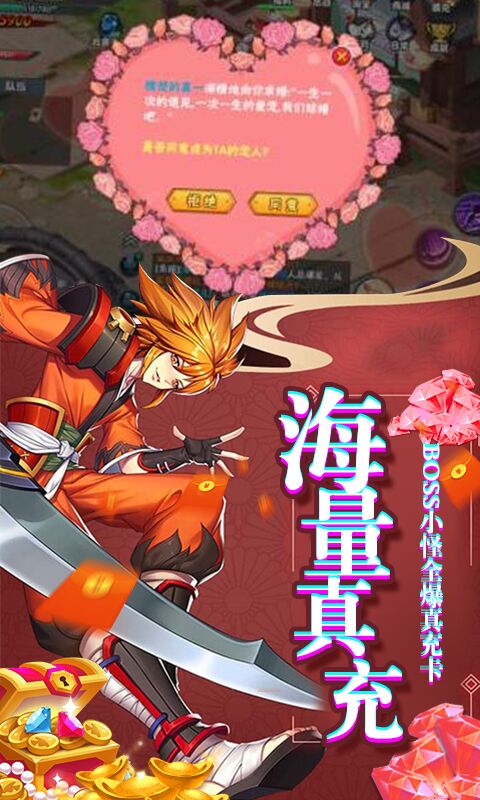 海量爆真充说明:野外小怪无限爆充值卡,充值卡可激活累充运营活动,地宫首领、叛忍首领击杀后百分百爆充值卡碎片。跨服首领对首领最后一击的玩家必得98元充值卡,参与的玩家奖励6元充值卡。