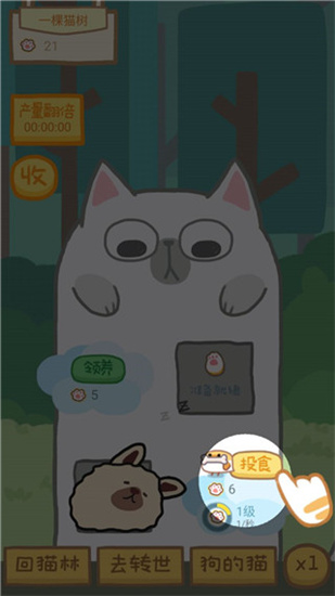 狗的猫林是由睡神飞工作室全新打造的一款十分有趣且能够体验猫咪养成的休闲放置手机游戏。这里拥有非常Q萌的小动物们和令人舒适的游戏画面,让玩家能够放松一整天绷紧的心情。在游戏当中玩家需要不断的开启猫塔,每一层的猫塔是会慢慢的增高的,小猫咪肚子前面有一个养育袋,小猫咪长得越高的话,前面的养育袋就会生产处各种不同样的狗头,也可能不一定是狗头哦,也有可能是其他的什么东西,还可以生产出金币哦。这款游戏不仅拥有非常清新简约的游戏画面,还有十分轻松地休闲放置玩法,让玩家在游戏当中能够享受到十分愉悦的心情。在游戏里玩家还可以向小宠物们投猫粮等食物,就连挂机也可以获得超多的金币收益呢,玩家无需一直盯着,当玩家拥有很大很高的猫和猫森林是,你就可以到外面的世界到处行走了。本次小编给大家带来的是狗的猫林破解版。喜欢的小伙伴们快下载体验吧!