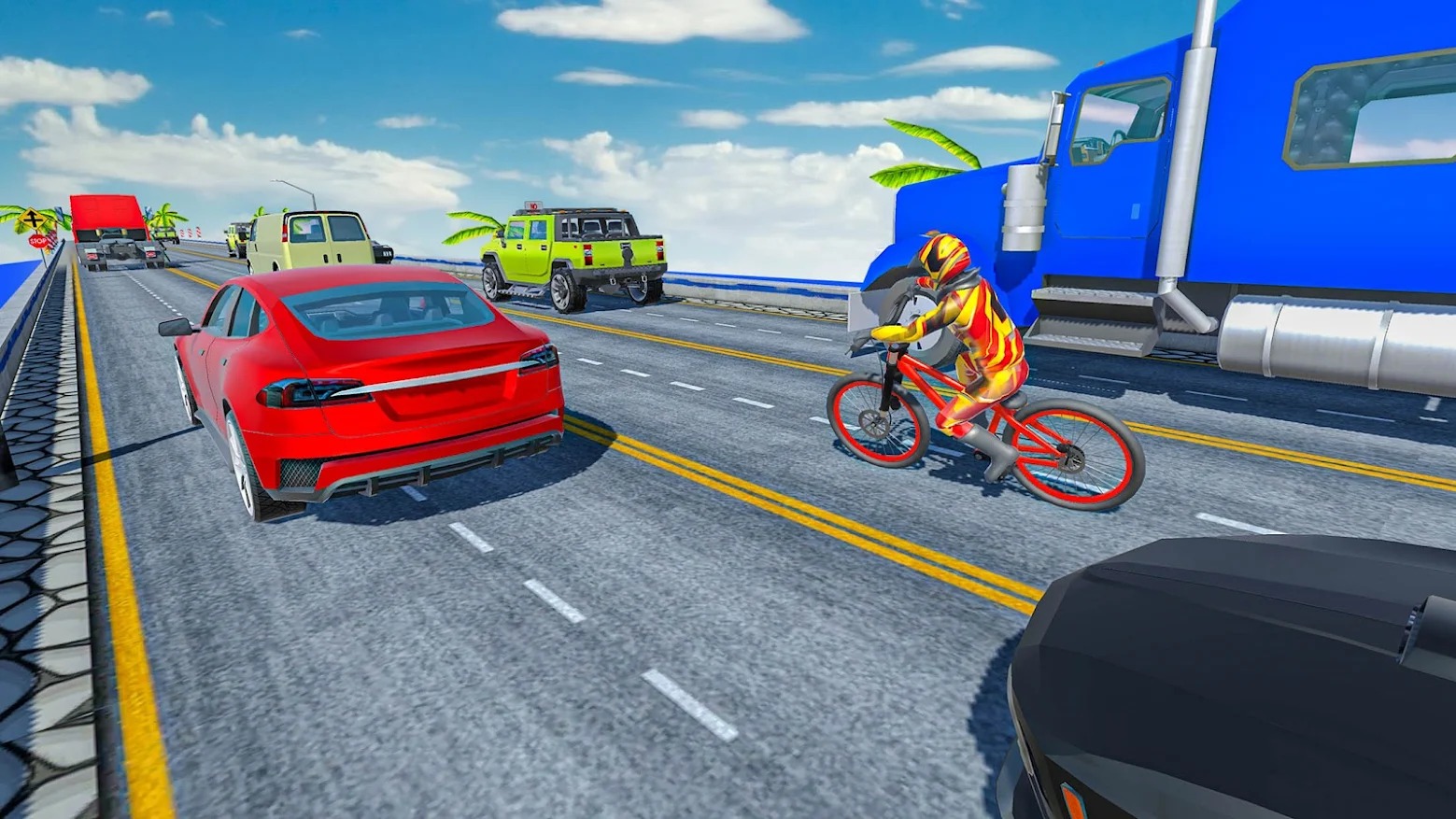 2、紧张刺激的自行车公路跑酷;
