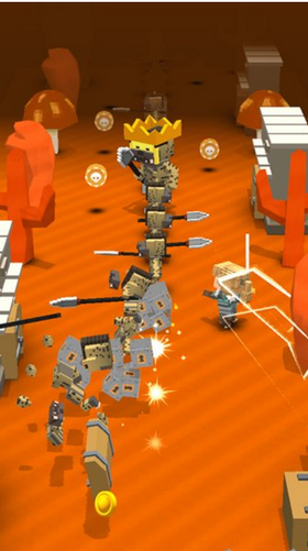 3,通过点击控制军队战斗,更强大的敌人要打,用你的手速打得快,使用金币购买强大的武器来增加你的力量,摧毁更多的敌人。