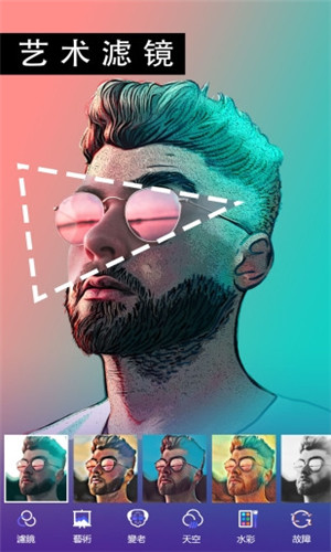 图片裁剪,调整角度,拉伸变形,还有调节透明度,曝光度,对比度,饱和度,色温等十多项参数调节;多种不同风格的艺术字体,精心调配的品质滤镜,超过300种可爱又好看的贴纸,精美易用的图片编辑工具,让照片从此不再平庸!